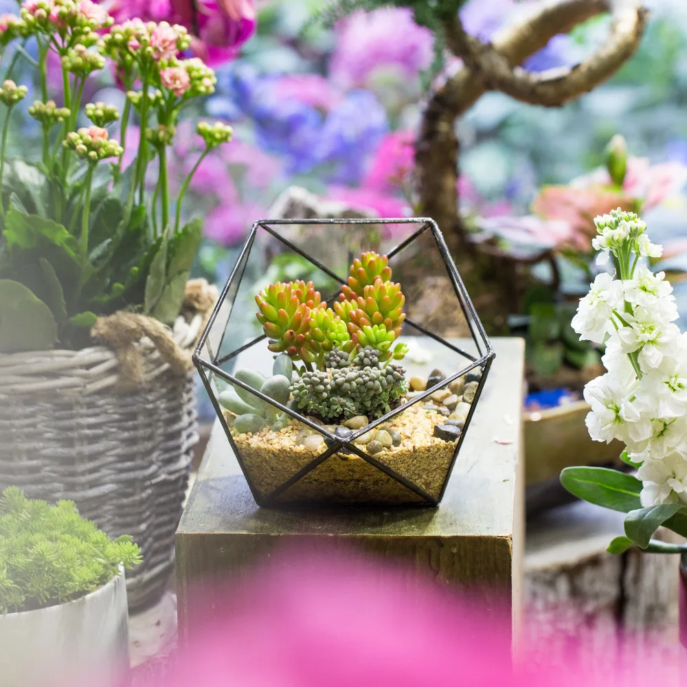 Floralcraft 17 X 17 X 17cm Triangular Half Ball Glass Geometric Terrarium Black Indoor Outdoor Tabletop Decor Penta Terrarium Flower Display Planter Pot For Succulent Fern Moss Cacti Amazon Co Uk Garden